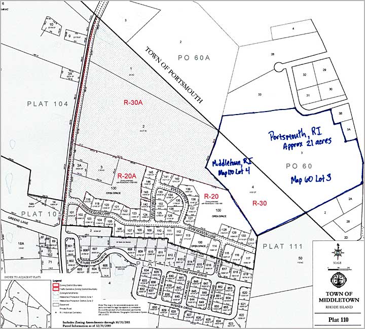This large parcel of raw land starts in Portsmouth and extends into Middletown. Many development opportunities exist.